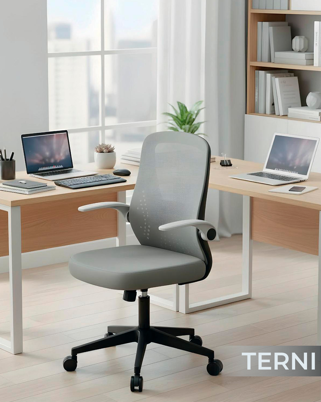 Esta cadeira de escritório combina funcionalidade, design compacto e conforto, sendo ideal para espaços de trabalho modernos.